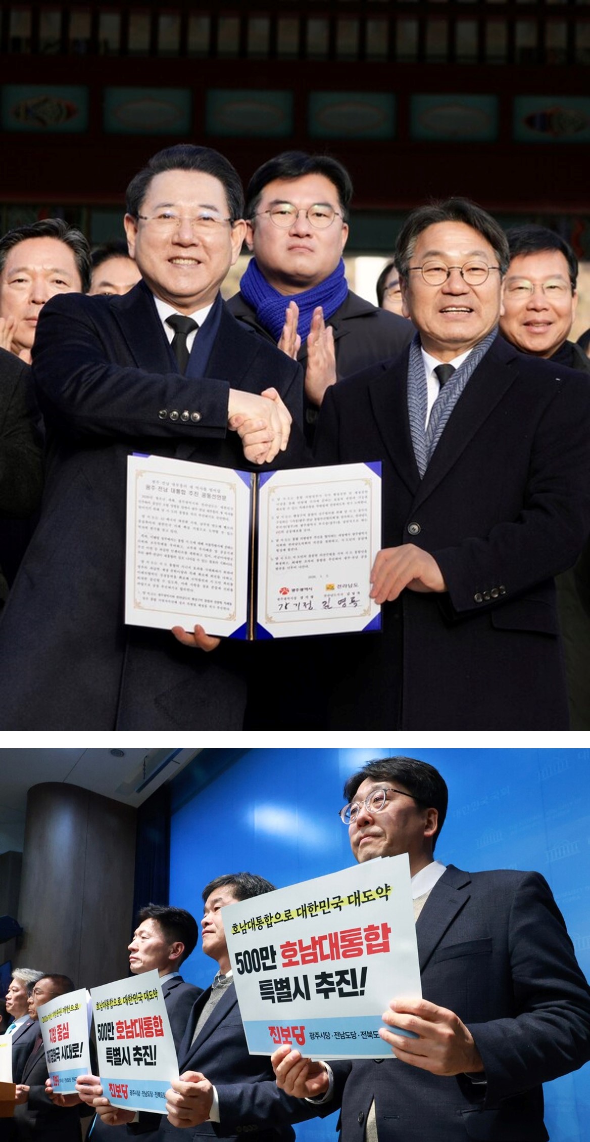 ½Å³â º®µÎ Çý¼ºÃ³·³ µîÀåÇÑ ¡®ÅëÇÕ Áö¹æÁ¤ºÎ ÃßÁø °øµ¿¼±¾ð¡¯ ÀÌÈÄ ±¤ÁÖ¡¤Àü³² ¾ç ÁöÀÚü°¡ ÅëÇÕÀ» ¸ñÇ¥·Î ¼û °¡»Û Çຸ¿¡ ³ª¼°í ÀÖ´Ù. ÅëÇÕÀÌ ¡®¼öµµ±Ç 1±Ø üÁ¦ ±Øº¹À» À§ÇÑ ÇʼöºÒ°¡°áÇÑ Á¶Ä¡¡¯¶ó´Â µ¥ ´Þ¸® À̰ßÀº º¸ÀÌÁö ¾ÊÁö¸¸, Áö¹æ¼±°Å Àü±îÁö ªÀº ½Ã°£ ³» ÃßÁøÀ» ¸ñÇ¥·Î ÆîÃÄÁö´Â ±ØÇÑÀÇ ¼ÓµµÀü¿¡ À̹ø ½Ãµµ°¡ ÀÚÄ© ´Ü¼ø ÇàÁ¤ÅëÇÕ¿¡ ±×Ä¡´Â °Í ¾Æ´Ï³Æ ¿ì·Áµµ ³ª¿À°í ÀÖ´Ù.