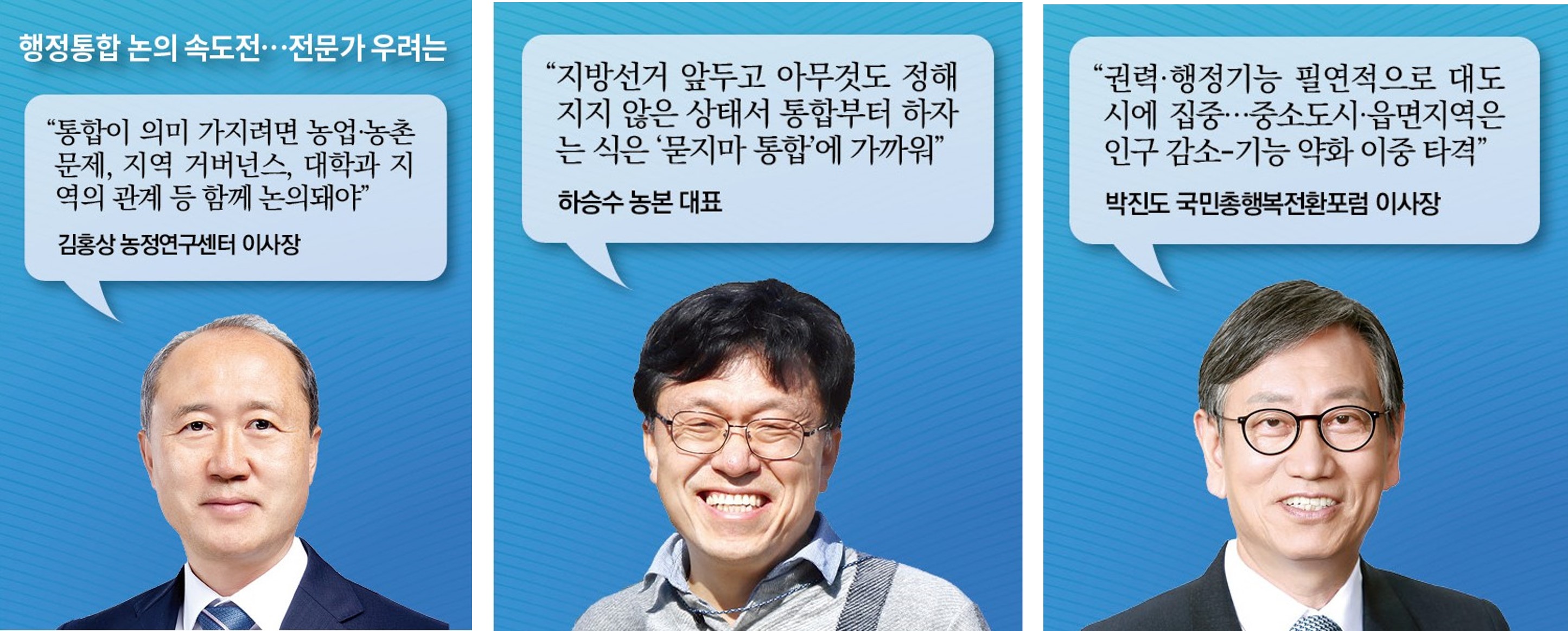 ´ëÀü¡¤Ãæ³², ±¤ÁÖ¡¤Àü³² µî ±Ç¿ªº° ÇàÁ¤ÅëÇÕ ³íÀǰ¡ ¡®¼öµµ±Ç ÀÏ±Ø Ã¼Á¦ ¿ÏÈ¡¯¶ó´Â ¸íºÐ ¾Æ·¡ ºü¸£°Ô È®»êµÇ°í ÀÖÁö¸¸, ³óÁ¤¡¤Áö¿ª Àü¹®°¡¿Í ¿ø¿Ü Á¤´ç, ½Ã¹Î»çȸ´Üü µîÀ» Áß½ÉÀ¸·Î ¡°Á¤Ã¥ ¸ñÇ¥¿Í ¼ö´ÜÀÌ ¾î±ß³ª ÀÖ´Ù¡±´Â ºñÆÇÀÌ Á¦±âµÇ°í ÀÖ´Ù. ¼öµµ±Ç ÁýÁßÀ» ¿ÏÈÇÏ°Ú´Ù¸é¼ ÇàÁ¤±¸¿ªÀ» Ű¿ì´Â ¹æ½ÄÀÌ °ú¿¬ ½ÇÈ¿ÀûÀÎ ÇØ¹ýÀÎÁö ºÒºÐ¸íÇÑ ¹Ý¸é, ÅëÇÕ °úÁ¤°ú ÀÌÈÄ ¹ß»ýÇÒ ¼ö ÀÖ´Â ±Ç·Â¡¤ÀçÁ¤¡¤Á¤Ã¥ ÁýÁßÀº ³óÃ̰ú ÁÖº¯À» ´õ¿í ¼Ò¿Ü½Ãų °¡´É¼ºÀÌ Å©´Ù´Â ÁöÀûÀÌ´Ù.
