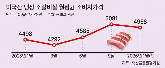 ´çÃÊ ¹Ì±¹»ê ¼è°í±â°¡ ¹«°ü¼¼·Î ÀüȯµÇ¸é °¡°ÝÀÌ ³»·Á°¥ °ÍÀ̶õ °üÃøÀÌ ¸¹¾Ò´Ù. ÇÏÁö¸¸ ½ÇÁ¦·Ð °¡°ÝÀÌ ¿ÀÈ÷·Á 10% ³Ñ°Ô ¿Ã¶ú´Ù. Ãà»ê¹°Ç°ÁúÆò°¡¿ø¿¡ µû¸£¸é ÀÌ´Þ 1¡­16ÀÏ ¹Ì±¹»ê ³ÃÀå ¼Ò°¥ºñ»ì Æò±Õ ¼ÒºñÀÚ°¡°ÝÀº 100g´ç 4958¿øÀÌ´Ù. Áö³­ÇØ 1¿ù(4498¿ø)º¸´Ù 10.2%, Æò³â 1¿ù(4269¿ø)º¸´Ù 16.1% ³ô¾Ò´Ù. 1¡­16ÀÏ 1µî±Þ Çѿ젰¥ºñ»ìÀÌ 100g´ç 6625¿øÀΠ°ÍÀ» °í·ÁÇϸ頹̱¹»ê ¼è°í±â°ªÀº ÇÑ¿ì°í±âÀÇ 75% ¼öÁØ¿¡ À°¹ÚÇß´Ù.