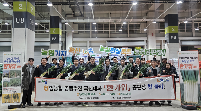 * 16ÀÏ ¼¿ï °¡¶ô½ÃÀå ä¼Ò2µ¿ °æ¸ÅÀå¿¡¼ ¹æÃ¶È¯ ³óÇù°æÁ¦ÁöÁÖ °øÆÇ»ç¾÷ºÎ °øÆÇ»ç¾÷±¹Àå(¾ÕÁÙ ¿ÞÂÊ ³×¹øÂ°ºÎÅÍ), ¹Ú±âÈ« ³óÇù°¡¶ô°øÆÇÀåÀå, ±è¼¼ÈÆ ¼Áøµµ³óÇù »ó¹«, ÃÖ¿øÀç ³óÇù°æÁ¦ÁöÁÖ Á¾¹¦¼¾ÅÍ ¼ÒÀå µîÀÌ ³óÇù °èÅë ÃâÇÏ Àü¿ë ½ÅǰÁ¾ ¡®ÇѰ¡À§¡¯ ´ëÆÄ ÆÇ¸Å È®´ë ÀÇÁö¸¦ ´ÙÁö°í ÀÖ´Ù.
