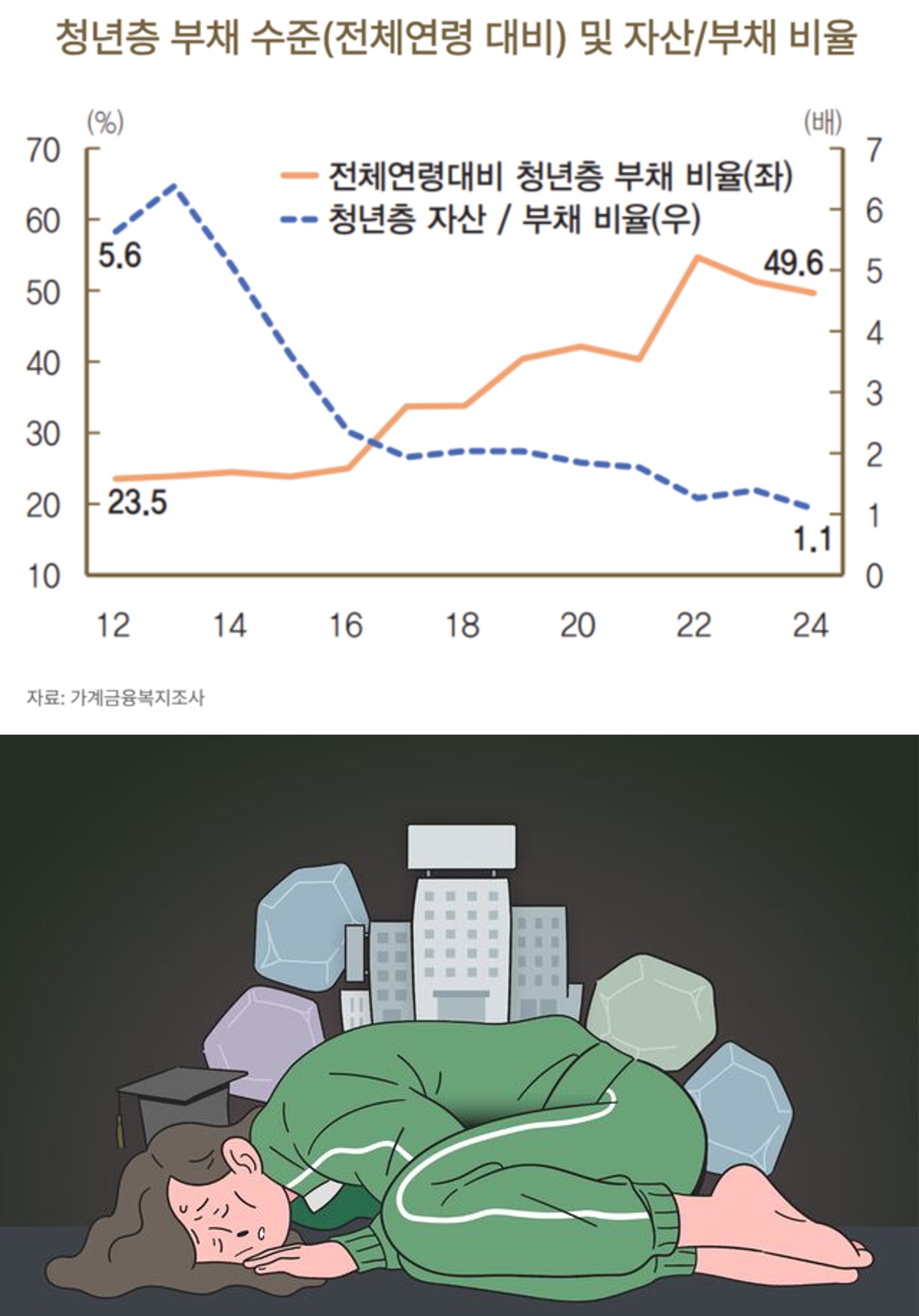 û³â¼¼´ë°¡ ³ëµ¿½ÃÀå ÁøÀÔ Áö¿¬°ú ³ôÀº Áְźñ ºÎ´ãÀ̶ó´Â ÀÌÁßÀÇ ¾î·Á¿ò¿¡ Á÷¸éÇØ ÀÖ´Ù. À̰°Àº ±¸Á¶Àû ¹®Á¦´Â û³â °³ÀÎÀÇ »ý¾Ö ¼Òµæ°ú ÀÚ»ê Çü¼ºÀº ¹°·Ð ¿ì¸® °æÁ¦ÀÇ ¼ºÀå ±â¹Ý±îÁö ¾àÈÇÒ ¼ö ÀÖ´Ù´Â ºÐ¼®ÀÌ ³ª¿Ô´Ù.