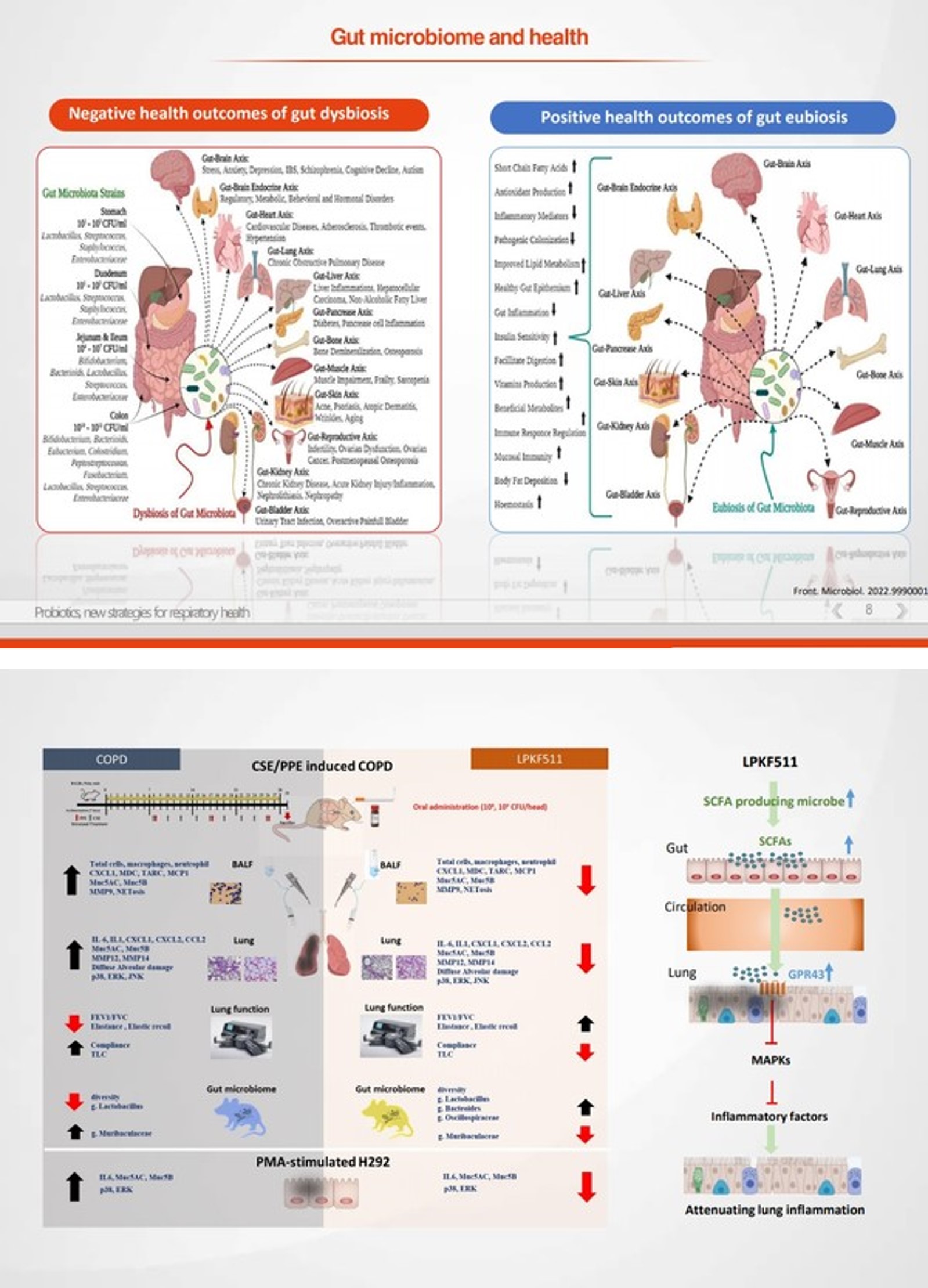 ¿¬±¸ÆÀÀº Àå³» ¹Ì»ý¹°ÀÌ ½ÄÀ̼¶À¯ µîÀ» ¹ßÈ¿ÇØ »ý¼ºÇÏ´Â ´Ü¼âÁö¹æ»ê(SCFA)ÀÌ Ç÷·ù¸¦ Ÿ°í À̵¿ÇØ ÆóÀÇ ¿°Áõ ¹ÝÀÀÀ» Á¶ÀýÇϰí, ¸é¿ª ¼¼Æ÷ÀÇ ±ÕÇüÀ» ¸ÂÃãÀ¸·Î½á È£Èí±â ÁúȯÀ» ¾ïÁ¦ÇÏ´Â ±âÀüÀ» È®ÀÎÇß´Ù. ƯÈ÷ COPD ȯÀÚÀÇ °æ¿ì, Àå³» ¹Ì»ý¹°ÀÇ ´Ù¾ç¼ºÀÌ °¨¼ÒÇÏ´Â µî »ýÅÂ°è º¯È°¡ °üÂûµÇ¸ç, À̴ ȣÈí±â Áõ»ó°ú ¹ÐÁ¢ÇÏ°Ô ¿¬°üµÈ´Ù.