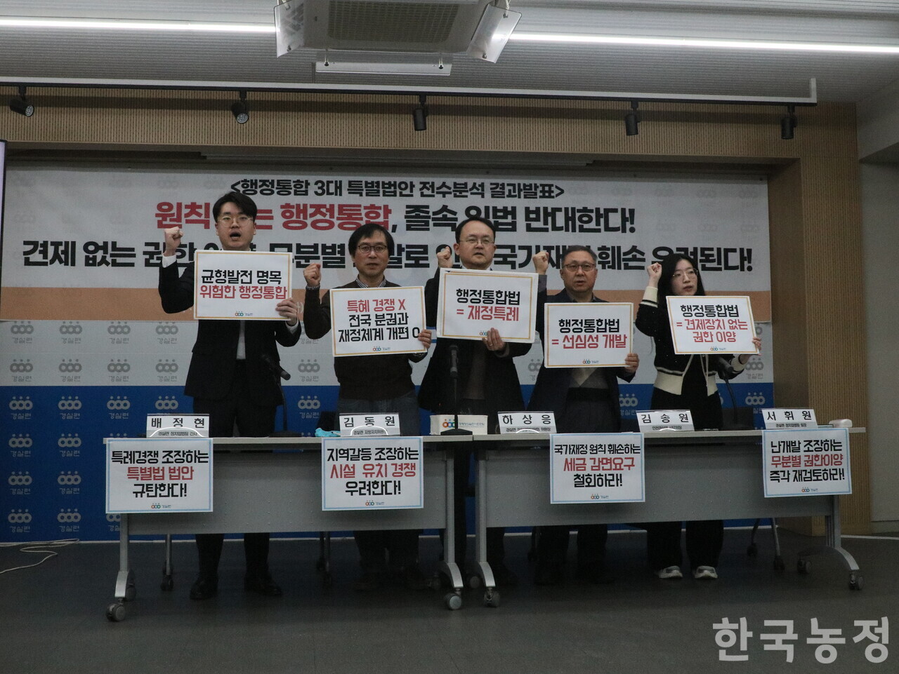 ¿À·§µ¿¾È Áö¹æÀÚÄ¡¡¤Áö¹æºÐ±Ç ½ÇÇöÀ» Ã˱¸ÇØ ¿Â °æÁ¦Á¤ÀǽÇõ½Ã¹Î¿¬ÇÕ(°øµ¿´ëÇ¥ ÀÌÀÇ¿µ¡¤·ùÁß¼®¡¤±èöȯ¡¤¿ø°æ¡¤±è¿¬¿Á, °æ½Ç·Ã)Àº ÃÖ±Ù ¹ßÀÇµÈ ÇàÁ¤ÅëÇÕ 3´ë Ưº°¹ý¾ÈÀ» Àü¼ö ºÐ¼®Çß´Ù. °æ½Ç·ÃÀº 10ÀÏ ¼¿ï µ¿¼þµ¿ °æ½Ç·Ã °´ç¿¡¼ ÇàÁ¤ÅëÇÕ 3´ë Ưº°¹ý¾È Àü¼öºÐ¼® °á°ú¹ßÇ¥ ¹× Á¹¼Ó ÀÔ¹ý Áß´Ü Ã˱¸ ±âÀÚȸ°ßÀ» ¿¾î ÇàÁ¤ÅëÇÕ 3´ë Ưº°¹ý¾ÈÀÇ ¹®Á¦Á¡À» ÁöÀûÇß´Ù. °æ½Ç·ÃÀÌ ³»¸° °á·ÐÀº, ÇöÀç ÃßÁø ÁßÀÎ ÇàÁ¤ÅëÇÕ 3´ë Ưº°¹ý¾ÈÀº ÁøÁ¤ÇÑ Áö¹æºÐ±Ç ½ÇÇöÀ» À§ÇÑ ¹ý¾ÈÀÌ ¾Æ´Ï¶ó´Â °ÍÀ̾ú´Ù.