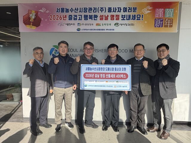 ³ó¼ö»ê¹°µµ¸Å½ÃÀå¹ýÀÎÇùȸ °¡¶ô½ÃÀåÁöȸ ¼Ò¼Ó µµ¸Å½ÃÀå¹ýÀÎ ¼¿ïû°ú¡¤Áß¾Óû°ú¡¤µ¿Èû°ú¡¤´ë¾ÆÃ»°ú´Â °øÀ͹ýÀÎ Èñ¸Á³ª´®¸¶ÄÏ(ÀÌ»çÀå ÀÌ»ó¿ë)°ú Çù·ÂÇØ ¼¿ï ¼ÒÀç °¡¶ô¡¤°¼¡¤¾ç°îµµ¸Å½ÃÀå¿¡¼ û¼Ò¿Í ±³ÅëÁú¼ À¯Áö ¾÷¹«¸¦ ÇÏ´Â ÇöÀå Á¾»çÀÚ 400¿©¸í¿¡ ¼³ ¸íÀý °Ý·ÁǰÀ» Àü´ÞÇÏ°í °¨»çÀÇ ¶æÀ» ÀüÇß´Ù°í 10ÀÏ ¹àÇû´Ù.