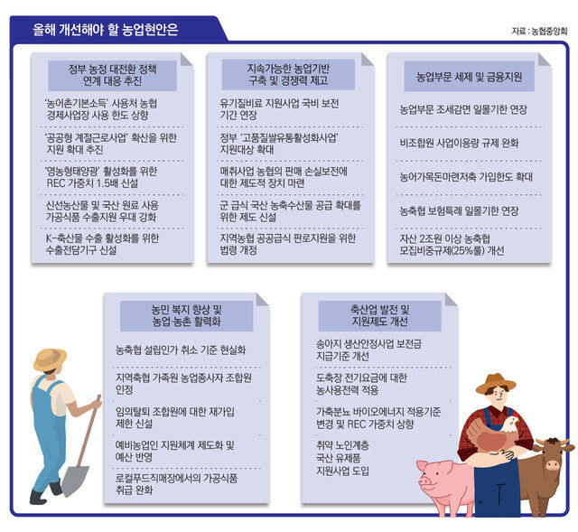 ¿ÃÇØ ¼÷¿ø»çÇ×Àº ¡ãÁ¤ºÎ ¡®³óÁ¤ ´ëÀüȯ¡¯ Á¤Ã¥ ¿¬°è ´ëÀÀ ÃßÁø ¡ãÁö¼Ó°¡´ÉÇÑ ³ó¾÷±â¹Ý ±¸Ãà ¹× °æÀï·Â Á¦°í ¡ã³ó¾÷ºÎ¹® ¼¼Á¦ ¹× ±ÝÀ¶ Áö¿ø ¡ã³ó¹Î º¹Áö Çâ»ó ¹× ³ó¾÷¡¤³óÃÌ È°·ÂÈ ¡ãÃà»ê¾÷ ¹ßÀü ¹× Áö¿ø Á¦µµ °³¼± µî Å©°Ô ´Ù¼¸°¡Áö ºÎ¹®À¸·Î ³ª´µ¾î ¼±Á¤µÆ´Ù. ³óÇùÁß¾Óȸ °ü°èÀÚ´Â ¡°¸ðµç ¼÷¿ø»çÇ×ÀÌ ÇØ¼ÒµÇ¸é 3Á¶1816¾ï¿øÀÇ ±â´ëÈ¿°ú°¡ ¹ß»ýÇÒ °ÍÀ¸·Î Ãß»êµÈ´Ù¡±°í ¼³¸íÇß´Ù.